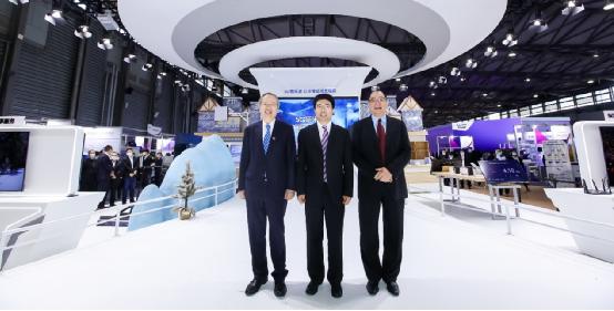 5G毫米波展區開展儀式嘉賓合影(從左至右依次為:GSMA高級顧問王建宙、中國聯通副總經理買彥州、高通公司中國區董事長孟樸)