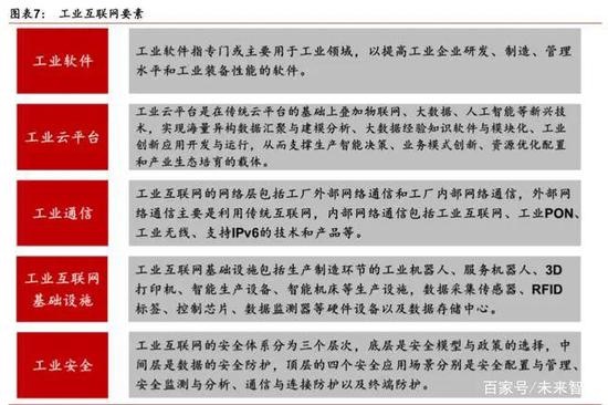 工業(yè)互聯(lián)網(wǎng)內(nèi)涵豐富,是新一代信息通信技術(shù)與先進制造業(yè)深度融合所形成的新興業(yè)態(tài)與 應(yīng)用模式。工業(yè)互聯(lián)網(wǎng)通常是指能夠滿足工業(yè)智能化發(fā)展需求,具有低時延、高可靠、廣 覆蓋特點的關(guān)鍵網(wǎng)絡(luò)基礎(chǔ)設(shè)施,工業(yè)互聯(lián)網(wǎng)的發(fā)展涵蓋工業(yè)軟件、工業(yè)云平臺、工業(yè)通信、 工業(yè)互聯(lián)網(wǎng)基礎(chǔ)設(shè)施和工業(yè)安全體系。