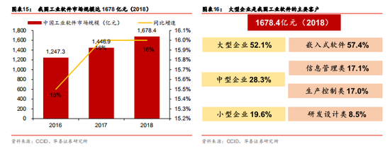 2018 年中國(guó)工業(yè)軟件市場(chǎng)規(guī)模約為 1678.4 億人民幣,同比增長(zhǎng) 16%,增速快于全球平均 水平。大型企業(yè)是工業(yè)軟件需求的主力,來(lái)自大型企業(yè)的投資超過(guò)一半,側(cè)面反映出中小 企業(yè)工業(yè)生產(chǎn)數(shù)字化水平仍較低,發(fā)展?jié)摿Υ蟆?/P>