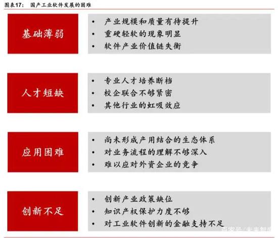 究其原因,一是因?yàn)楣I(yè)軟件的開(kāi)發(fā)具有高度復(fù)雜性。工業(yè)軟件不同于一般的軟件,其工 業(yè)屬性更強(qiáng),是工業(yè)知識(shí)、工業(yè)經(jīng)驗(yàn)和技術(shù)訣竅的凝聚和沉淀,單純的計(jì)算機(jī)軟件工程師 設(shè)計(jì)不出先進(jìn)的工業(yè)軟件。二是因?yàn)槲覈?guó)在工業(yè)化的過(guò)程中,直接使用國(guó)外成熟產(chǎn)品的“拿 來(lái)主義”讓我們錯(cuò)失了工業(yè)軟件成長(zhǎng)的關(guān)鍵培育期。