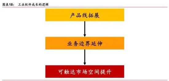 行業(yè)整合能力對(duì)于工業(yè)軟件的發(fā)展如此重要,其背后的原因在于工業(yè)軟件下游應(yīng)用場(chǎng)景豐 富,需求差異大,難以通過(guò)標(biāo)準(zhǔn)化的產(chǎn)品解決所有環(huán)節(jié)的問(wèn)題。這就需要不斷擴(kuò)充軟件產(chǎn) 品線,軟件產(chǎn)品線的延伸意味著業(yè)務(wù)邊界的擴(kuò)張,繼而帶來(lái)可觸達(dá)市場(chǎng)空間的提升。