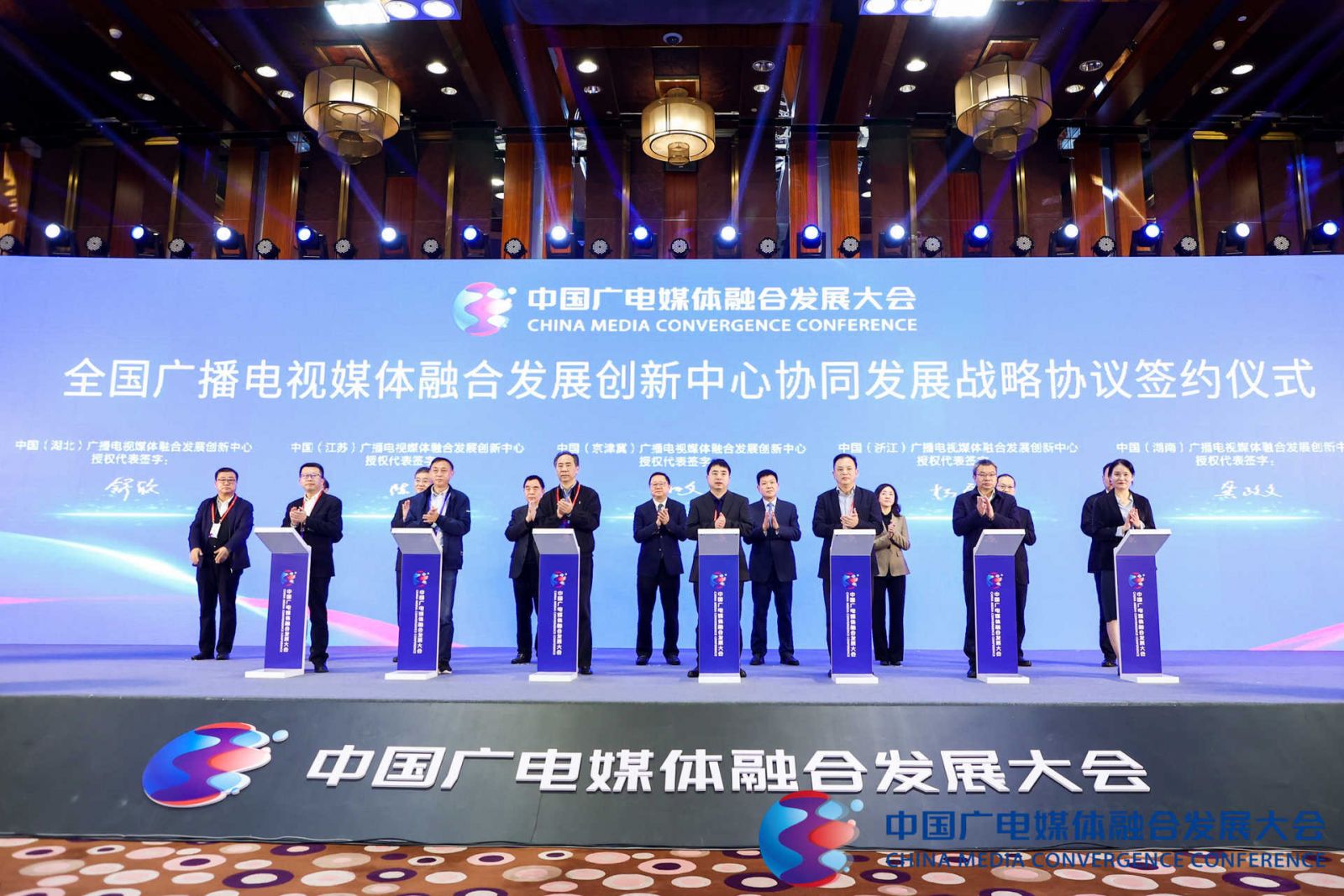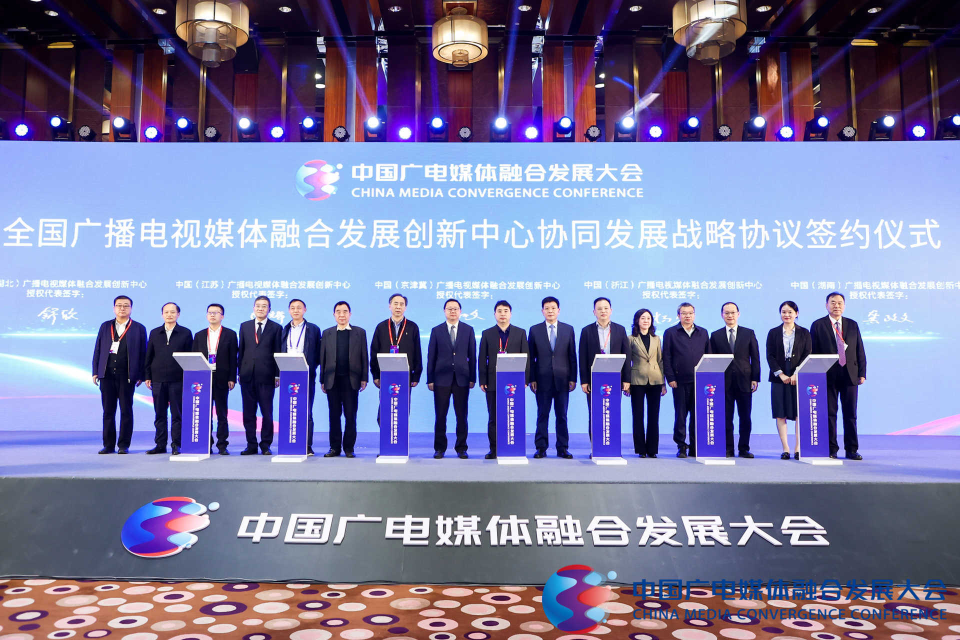 10月13日上午,第二屆中國廣電媒體融合發(fā)展大會的啟動式暨高端峰會舉行。啟動式上,京津冀、江蘇、浙江、湖北、湖南、陜西、蘇州等七家全國廣播電視媒體融合發(fā)展創(chuàng)新中心共同簽署《協同推進媒體融合創(chuàng)新發(fā)展戰(zhàn)略合作協議》。