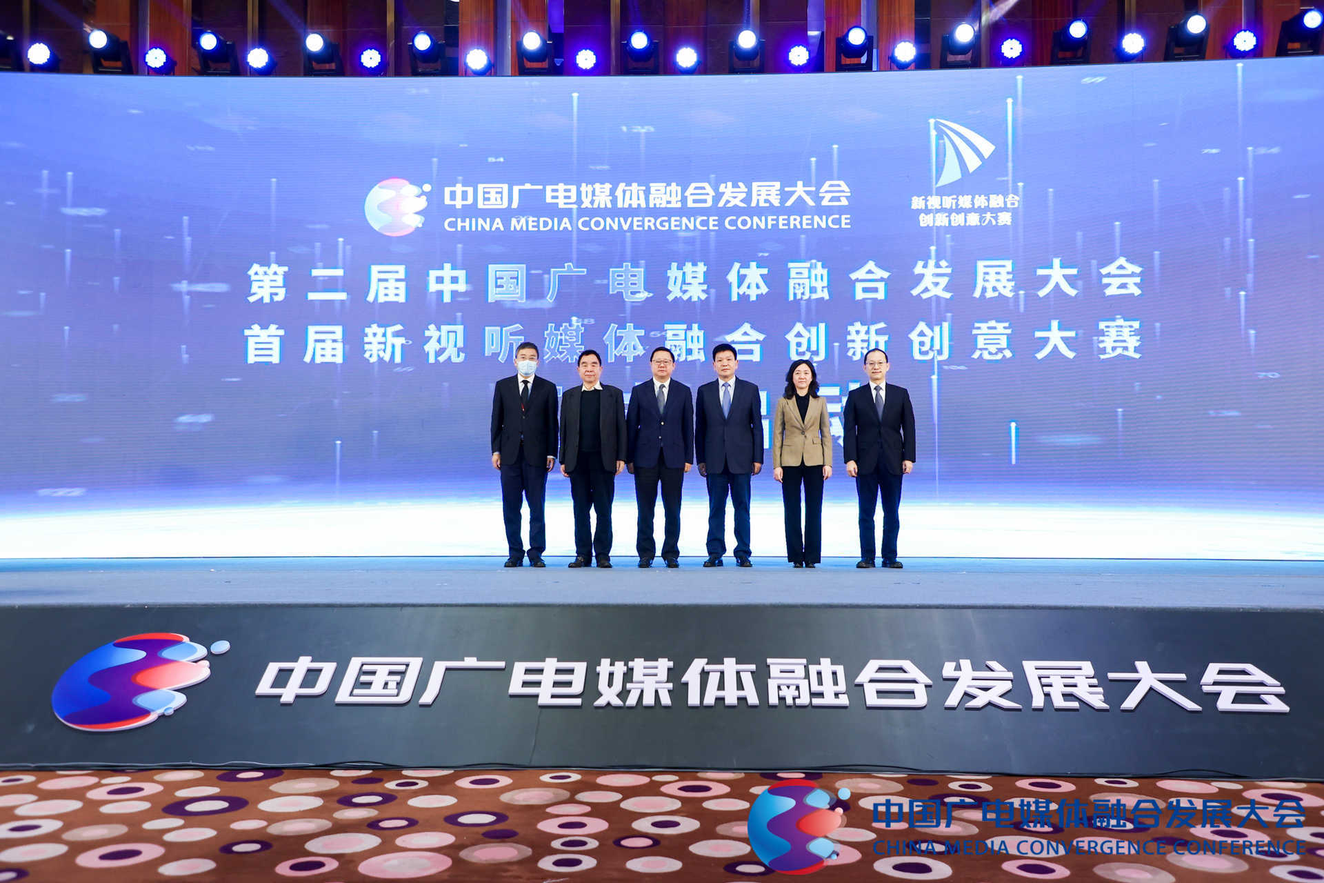 圖為:第二屆中國廣電媒體融合發(fā)展大會暨首屆新視聽媒體融合創(chuàng)新創(chuàng)意大賽啟動儀式