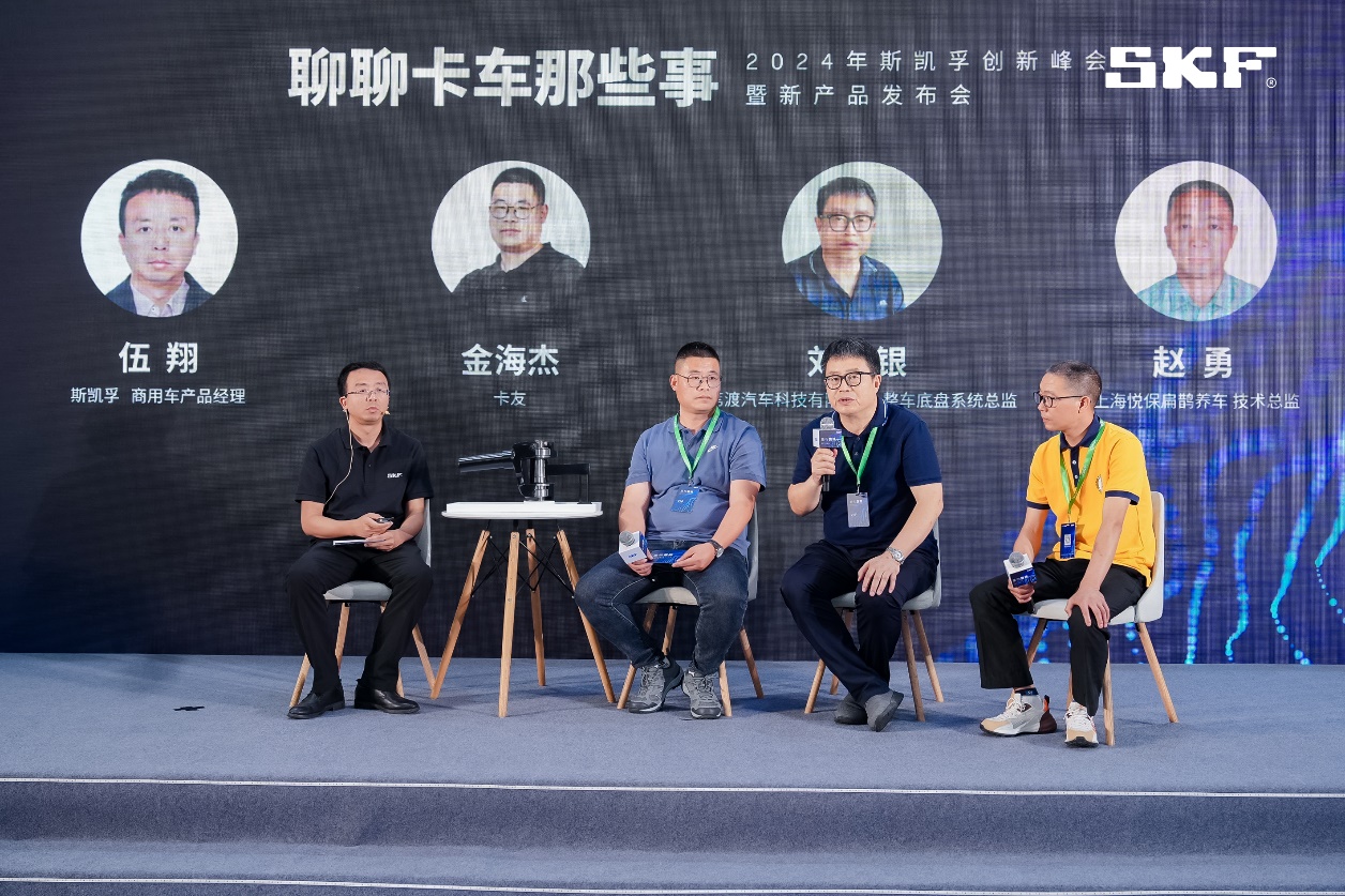 本次創(chuàng)新峰會(huì)上,以圓桌論壇的形式進(jìn)行了話題探討。上海電氣風(fēng)電集團(tuán)股份有限公司總工程師蔣勇、臥龍集團(tuán)董事局執(zhí)行董事鄭艷文,與斯凱孚中國區(qū)副總裁滕正繼、首席技術(shù)官錢衛(wèi)華博士一起洞察新能源、風(fēng)電等行業(yè)發(fā)展趨勢,共商協(xié)作發(fā)展共贏新圖景;資深汽車媒體人、路由社創(chuàng)始人及主理人楊克銓與斯凱孚中國及東北亞區(qū)汽車事業(yè)部總裁儲(chǔ)浩,就把握中國汽車市場新機(jī)遇,深度探討業(yè)態(tài)創(chuàng)新的新機(jī)遇及新挑戰(zhàn);更有20年駕齡的“卡友”金海杰、葦渡科技有限公司整車底盤系統(tǒng)總監(jiān)劉守銀、上海悅保扁鵲養(yǎng)車技術(shù)總監(jiān)趙勇與斯凱孚商用車產(chǎn)品經(jīng)理伍翔,暢聊卡車各使用端的故事。