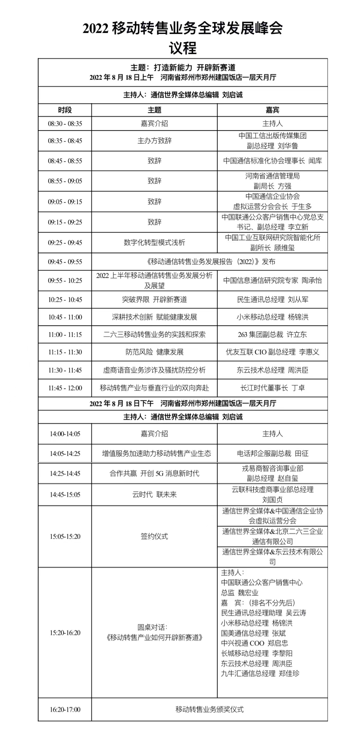 工聯網消息(IItime) 2022年8月18日,由中國工信出版傳媒集團主辦,信通傳媒·通信世界全媒體承辦,中國通信企業協會虛擬運營分會協辦的“2022移動轉售業務全球發展峰會”將在河南省鄭州市鄭州建國飯店召開。