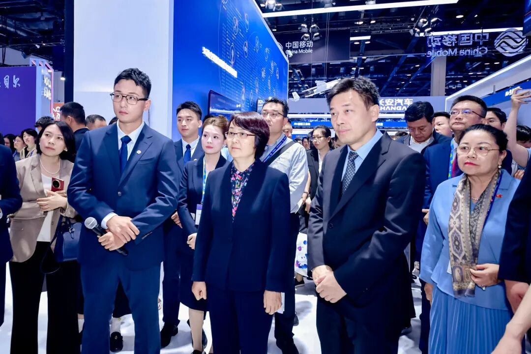 開幕式后,鐘志紅一行前往中國電信、中國移動、中國聯(lián)通、通用技術集團、中國廣電、中國鐵塔、華為等企業(yè)展臺,詳細了解6G、5G-A通感一體、人工智能大模型在空間數(shù)字化治理中的應用、低空智聯(lián)網解決方案、衛(wèi)星互聯(lián)網融合應用、自智網絡系統(tǒng)、智能機器人、無人機應急通信裝備等前沿技術與融合創(chuàng)新成果。