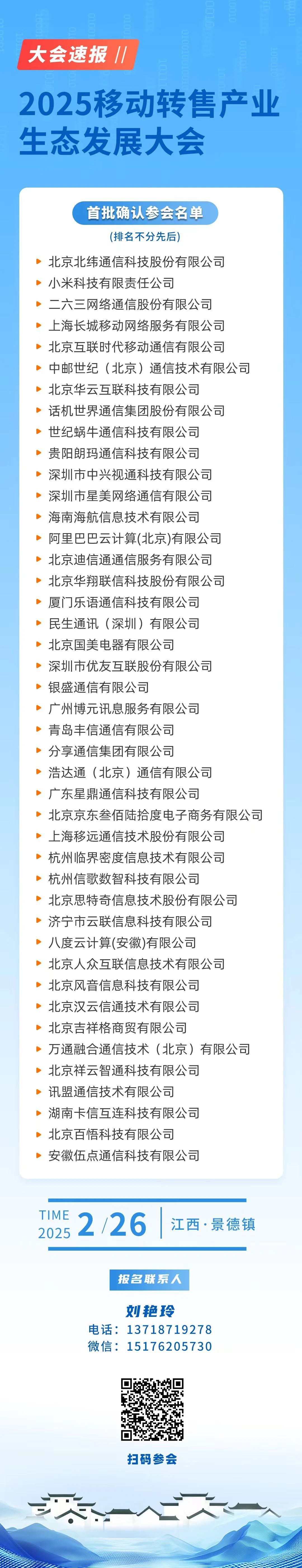 為了進一步探討產業發展方向,共商發展大計,2025年2月26日,以“AI助力產業高質量發展”為主題的“2025移動轉售產業生態發展大會”將在江西省景德鎮市舉辦。