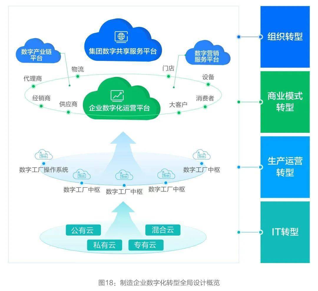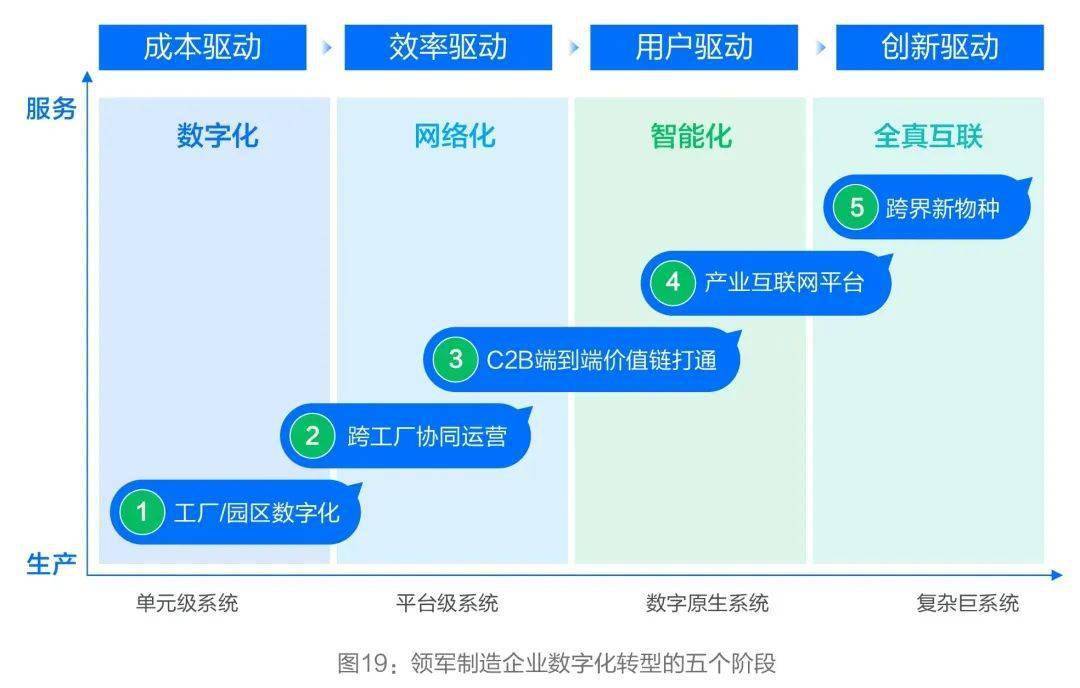 企業轉型的最終轉型核心驅動都將由成本驅動轉向用戶與創新驅動;數字化產品與服務在營收中的占比逐年增加;企業的生產運營與商業模式也將趨于平臺 化與生態化,最終的競爭也將轉為生態層面的競爭;同時,平臺型的業務模式需要更為復雜的平臺化技術架構與系統來支撐。