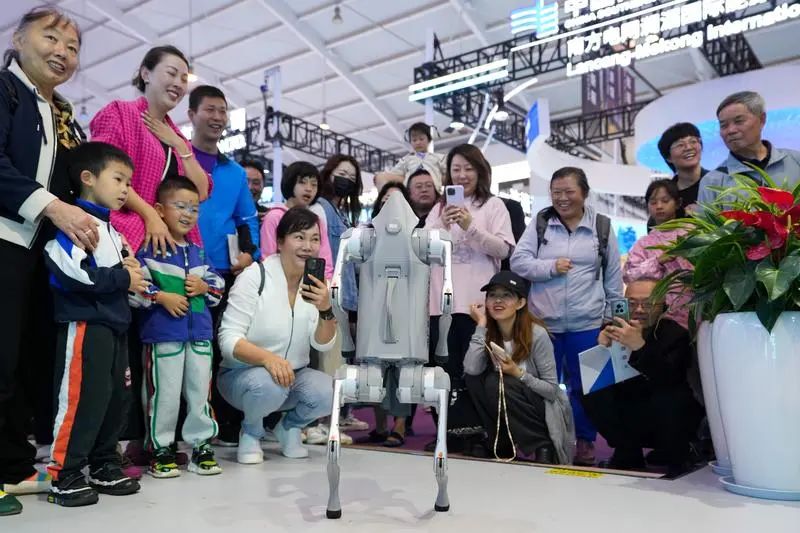 6月22日,觀眾在第9屆南博會(huì)上觀看機(jī)器狗表演。新華社記者 陳欣波 攝