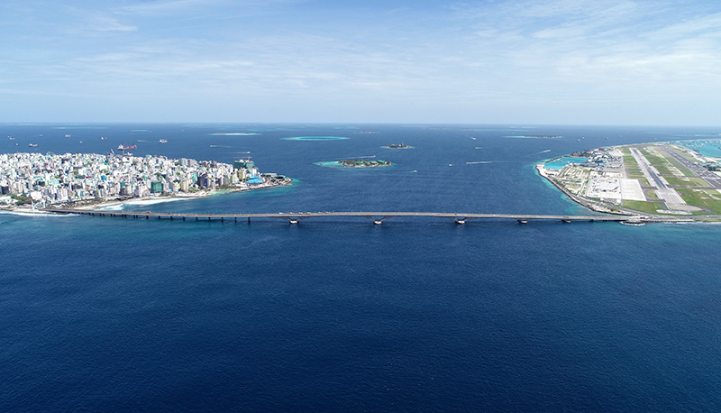 這是2019年8月30日在馬爾代夫航拍的連接首都馬累和機場島的中馬友誼大橋。新華社發(王明亮 攝)