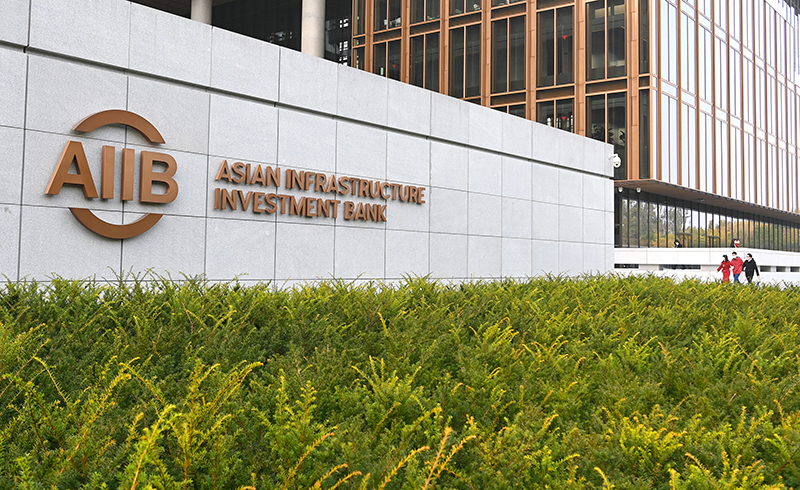 這是2021年10月25日拍攝的亞洲基礎設施投資銀行(亞投行)標志。新華社記者 李賀 攝