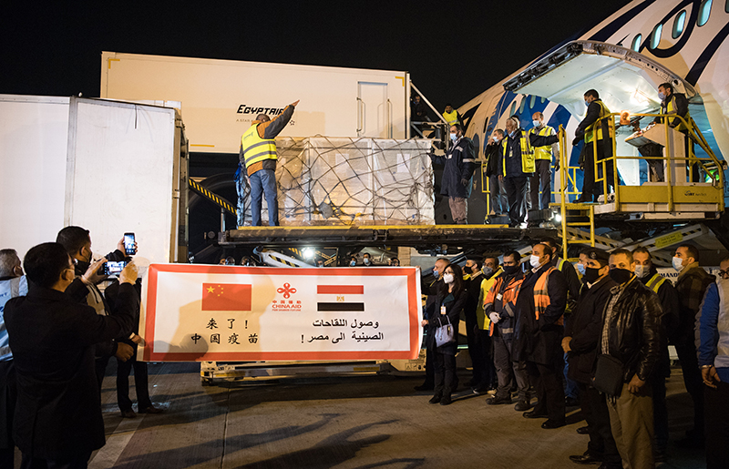 2021年2月23日,中國援助埃及的首批新冠疫苗抵達開羅國際機場。新華社記者 鄔惠我 攝