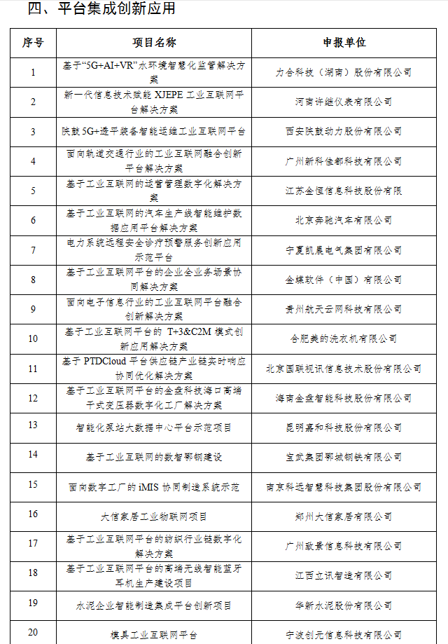 工聯網消息(IItime) 根據《工業和信息化部辦公廳關于組織開展2020年工業互聯網試點示范項目申報工作的通知》(工信廳信管函〔2020〕255號),經企業自主申報、地方推薦、專家評審等環節,形成了2020年工業互聯網試點示范項目名單。