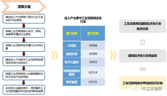 根據投入產出表,明確工業互聯網核心技術、網絡、設備等在國民經濟其他行業的投入情況,根據工業互聯網投入份額核算其對國民經濟其他行業產出的貢獻,通過逐行業剝離融合部分,加總得到工業互聯網融合帶動的經濟影響規模。工業互聯網融合帶動的經濟影響思路如下圖。